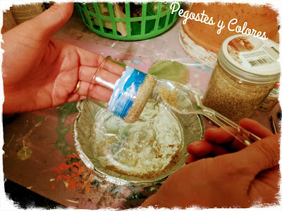 7.- Rociamos todo con spray adhesivo de mod podge.